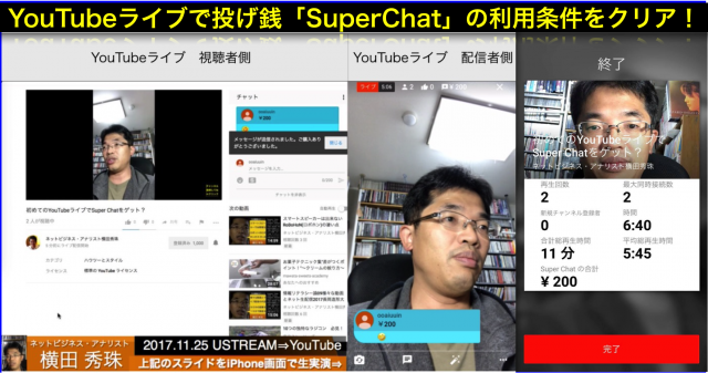 チャンネル登録者数1000人でYouTubeライブのSuperChat