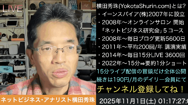 #横田秀珠 #ネットビジネスアナリスト #電脳アイデア泉人 #イーンスパイア #イーンスパイア株式会社. #ネットビジネス研究会 #ネットビジネス #ネットビジネス初心者 #ネットビジネスやりたい #ネットビジネスを始めたい #ネットビジネス2025