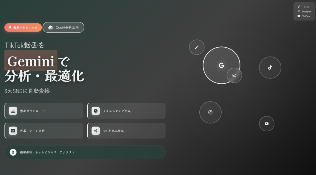 - TikTok動画のダウンロード機能とGeminiによる詳細分析の可能性