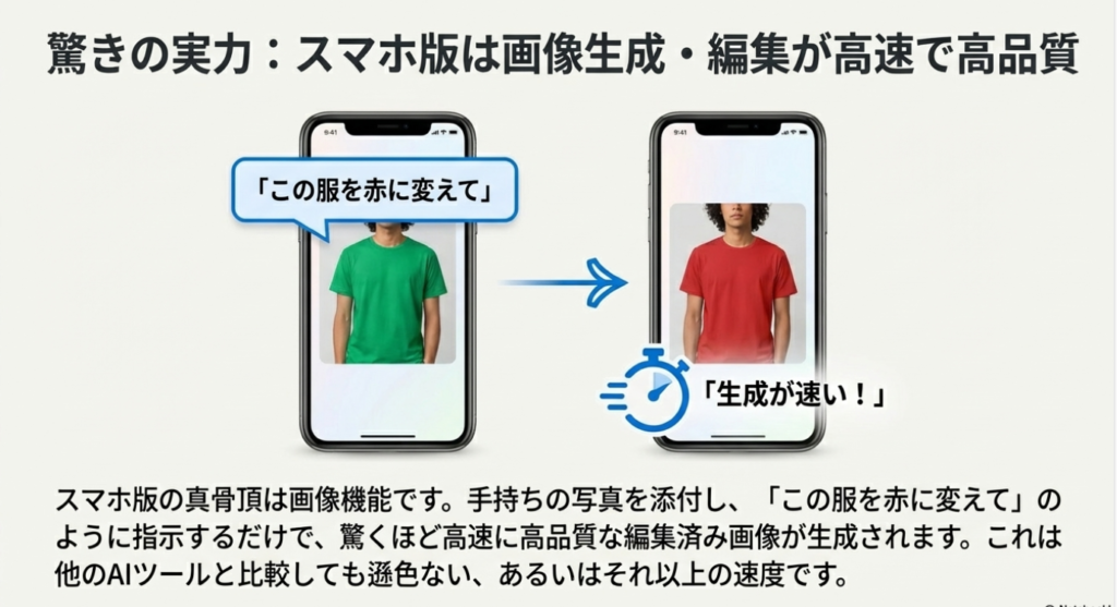 従来、専門的なソフトウェアが必要だった高度な画像編集や生成が、チャットのインターフェースを通じて手軽に行えることは、ユーザーのクリエイティビティを刺激し、エンゲージメントを飛躍的に高める可能性を秘めている。