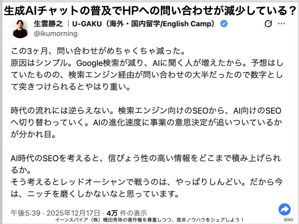 - カタログ型(Yahoo)→ 検索型(Google)→ 対話型(AI)へ進化