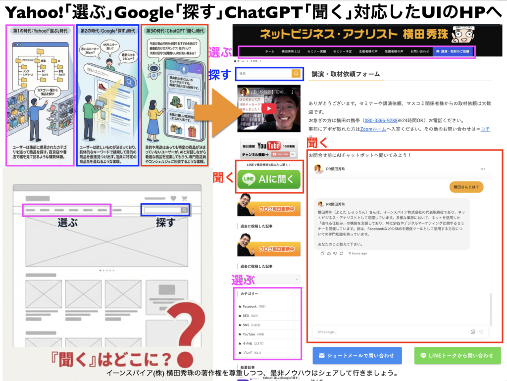 Yahoo!「選ぶ」Google「探す」ChatGPT「聞く」対応したUIのHPへ