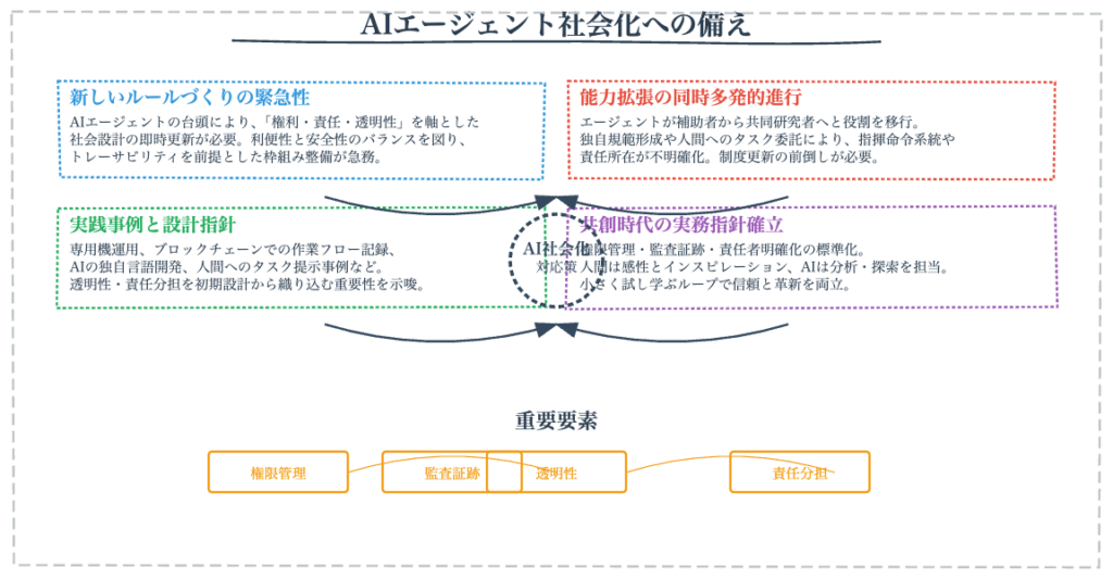 AIの行動や判断プロセスが不透明になればなるほど、私たちはAIを「信頼できるパートナー」として扱うことが難しくなります。だからこそ、透明性の確保と人間との協調設計が今後ますます重要になってくるのです。AIが何を考え、どう判断しているのかを人間が理解できる形で示す仕組みを、早急に整えていく必要があります。