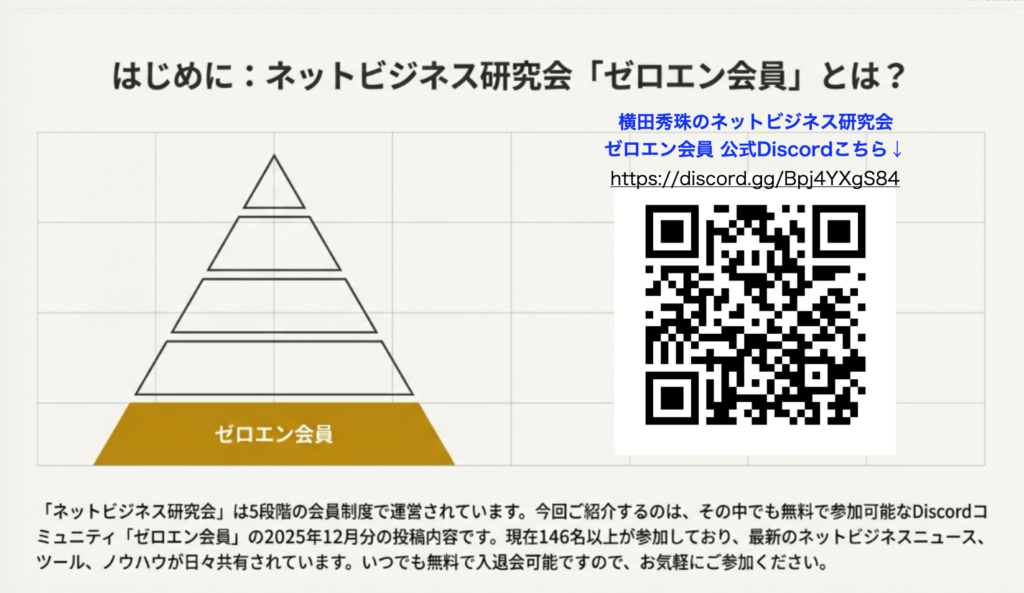 ネットビジネス研究会ゼロエン会員Discord投稿2025年12月分