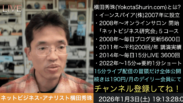 #横田秀珠 #ネットビジネスアナリスト #電脳アイデア泉人 #イーンスパイア #イーンスパイア株式会社. #ネットビジネス研究会