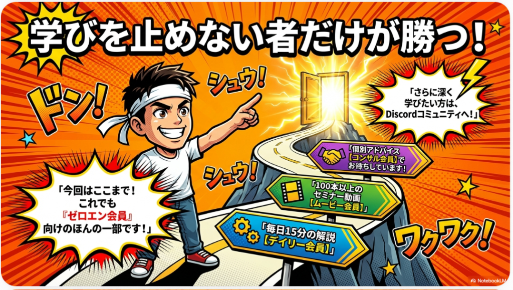 ネットビジネス研究会を検討する際には、いくつかの注意点も把握しておくことが重要です。まず、コミュニティのプラットフォームとしてDiscordを使用しているため、Discordの操作に不慣れな方は最初に使い方を覚える必要があります。Discordは直感的に使えるツールですが、サーバーへの参加方法やチャンネルの見方など、初期設定に少し手間がかかるかもしれません。ただし、スマートフォンのアプリからも簡単に参加できるため、慣れてしまえば問題はありません。次に、情報量の多さが逆に負担になる場合もあります。毎月多数の記事や動画解説が投稿されるため、すべてのコンテンツを追いきれないと感じる方もいるかもしれません。そのような場合は、特に関心のあるジャンルのチャンネルを優先的にフォローするなど、自分なりの情報整理の仕方を確立することが大切です。また、コンサル会員(月額5,400円)の個別アドバイスは月1回30分のZoomセッションのため、頻繁なフィードバックが必要な方には物足りなさを感じる場合もあるでしょう。こうした点を踏まえたうえで、自分の学習スタイルや目的に合ったプランを選ぶことが、ネットビジネス研究会を最大限に活用するためのポイントです。