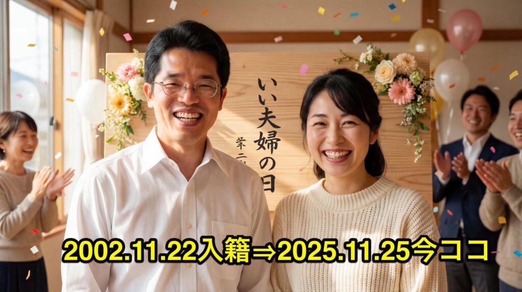 2002年11月22日は小室哲哉とKEIKOの結婚式を挙げた日で、僕ら夫婦2人の入籍日と一緒でした。僕らが入籍したニュースをトップに報じられることなかった悔しかったことを覚えていますが(笑)今や語呂合わせで決めた「いい夫婦の日」は誰もが知ってる皆に祝ってもらえる日になりました。