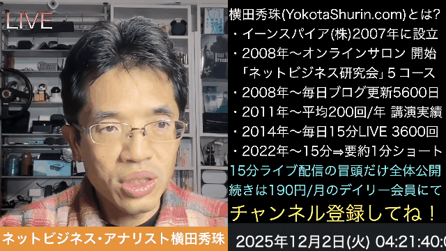 #横田秀珠 #ネットビジネスアナリスト #電脳アイデア泉人 #イーンスパイア #イーンスパイア株式会社. #ネットビジネス研究会 #ネットビジネス #ネットビジネス初心者 #ネットビジネスやりたい #ネットビジネスを始めたい #ネットビジネス2025