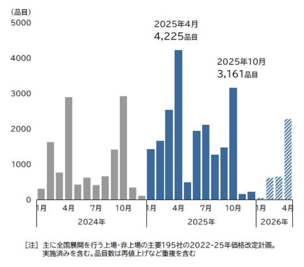 2026年1月、食品の値上げは小規模に
