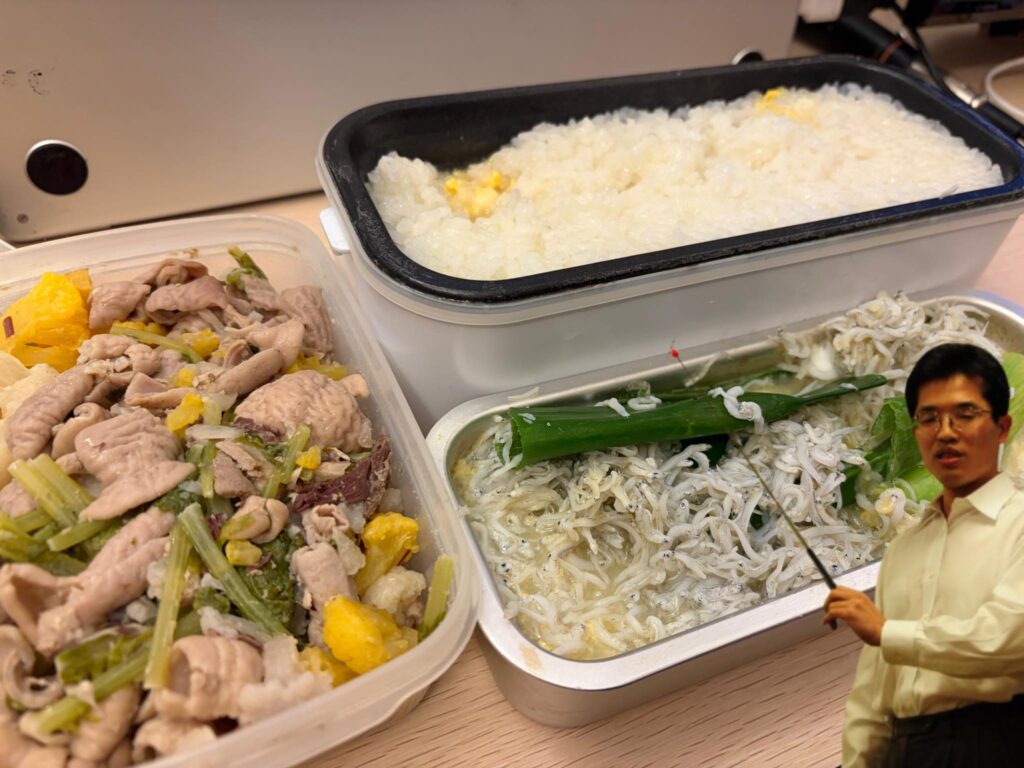 左の持参した白モツとカリフラワーと大根菜を食べました。