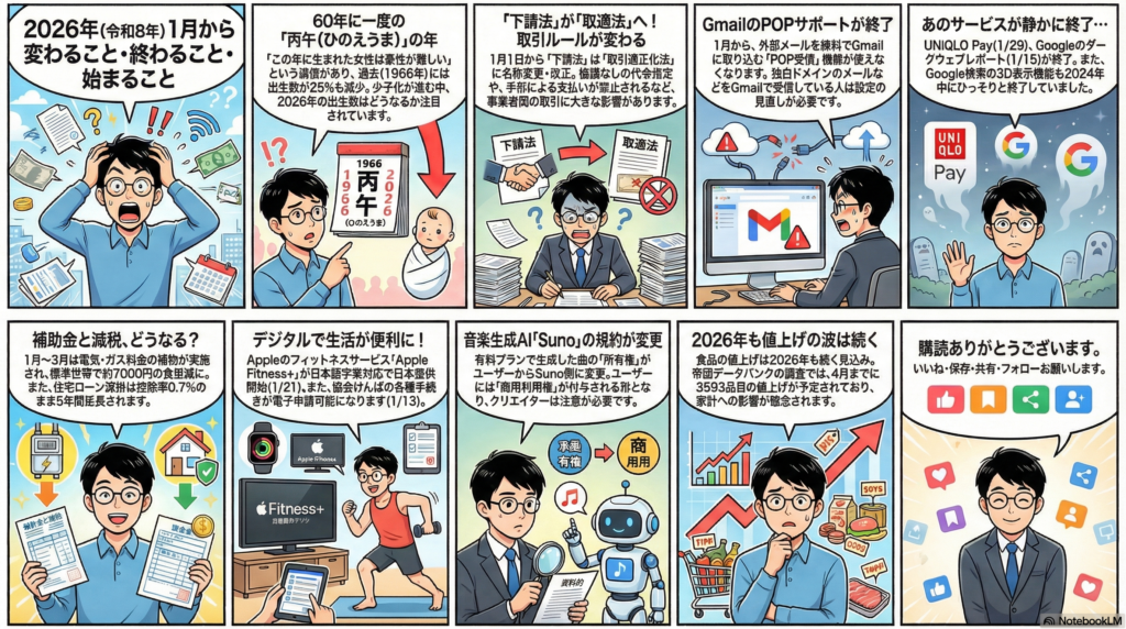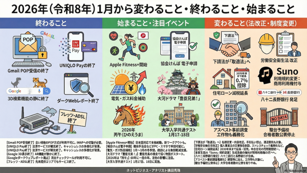 2026年(令和8年)1月から変わること・終わること・始まること