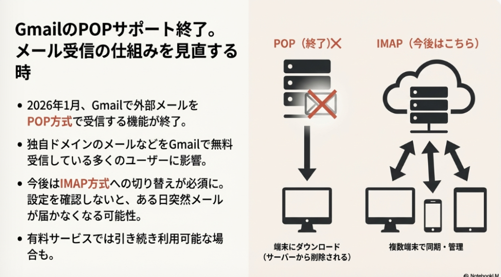 2026年1月、Gmail、POPのサポートを終了