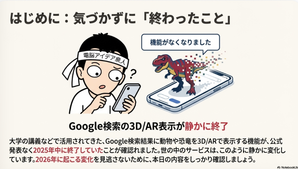 2024年12月まで大学の講義で確認できていたGoogle検索の3D表示が静かに終了