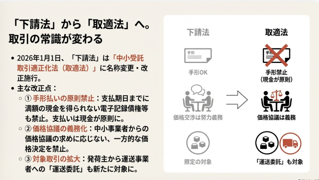 2026年1月から「下請法」は「取適法(とりてきほう)」へ変更