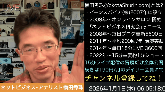 ネットビジネス・アナリスト横田秀珠が2026年を予測する