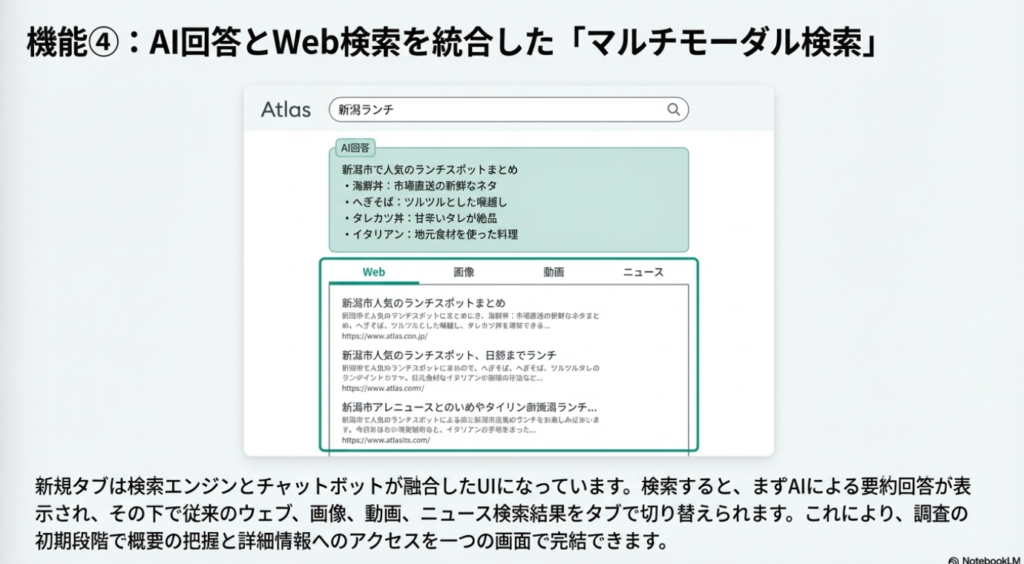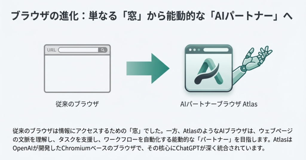• Atlas: ブラウザ操作の自動実行にフォーカスした**「業務プロセスの自動化(エージェント機能)」**特化型。