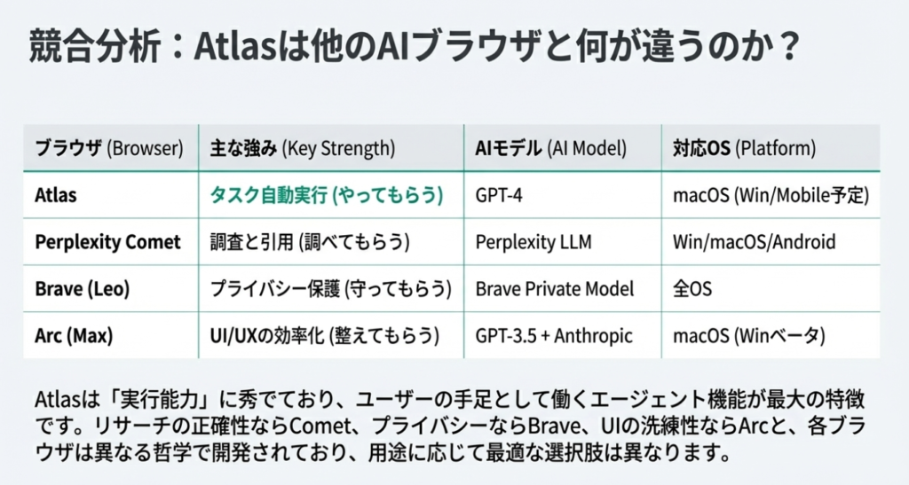 5. 競合AIブラウザとの比較とAtlasの優位性
