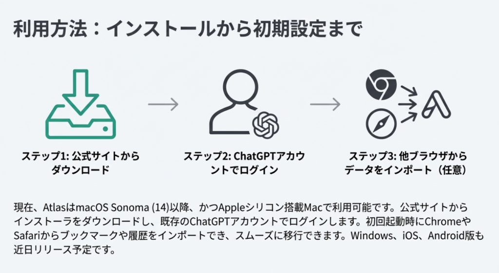 ◦ 現状: Atlasは現在、macOS版のみ提供されています。