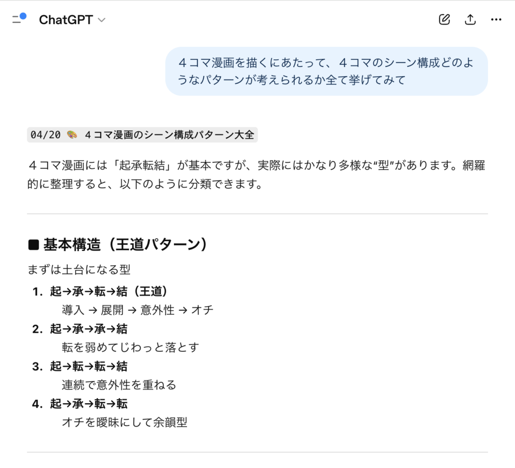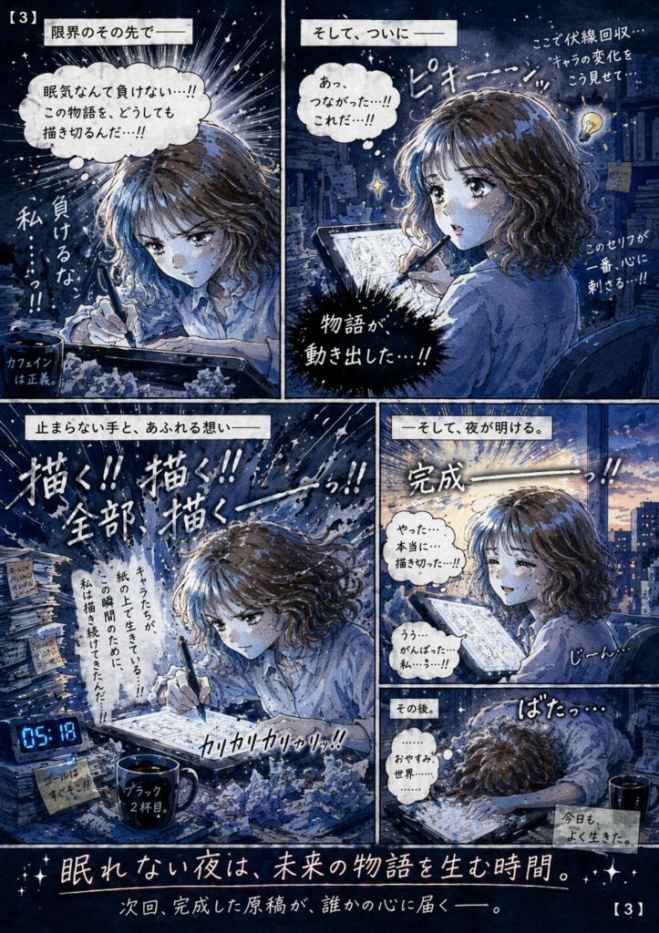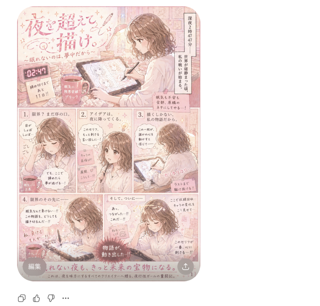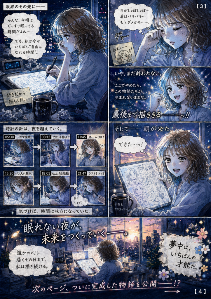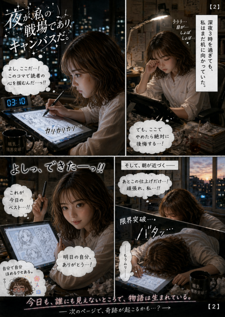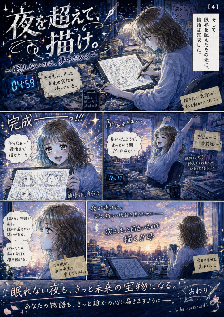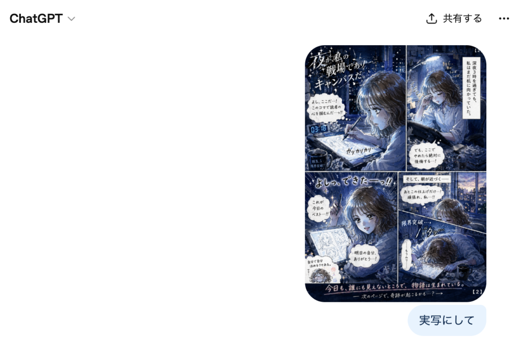 次に、4コマ漫画をGPT-Image2で描いてきますが