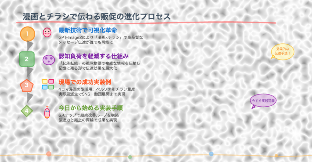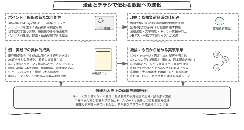 ChatGPT-Image2のチラシやスライド風マンガ、4コマ漫画の事例