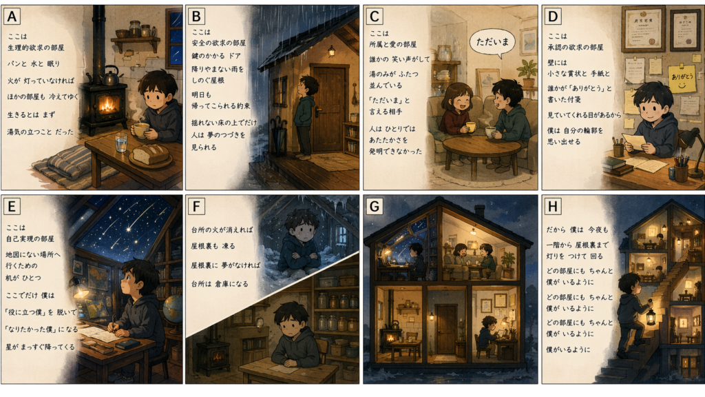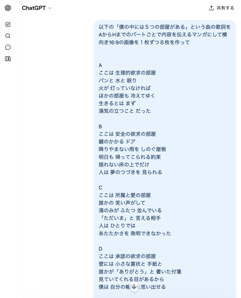 マズローの5大欲求を使える歌詞をAIで考えさせて