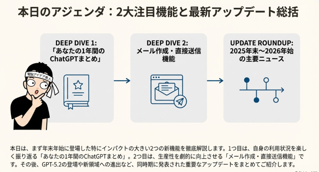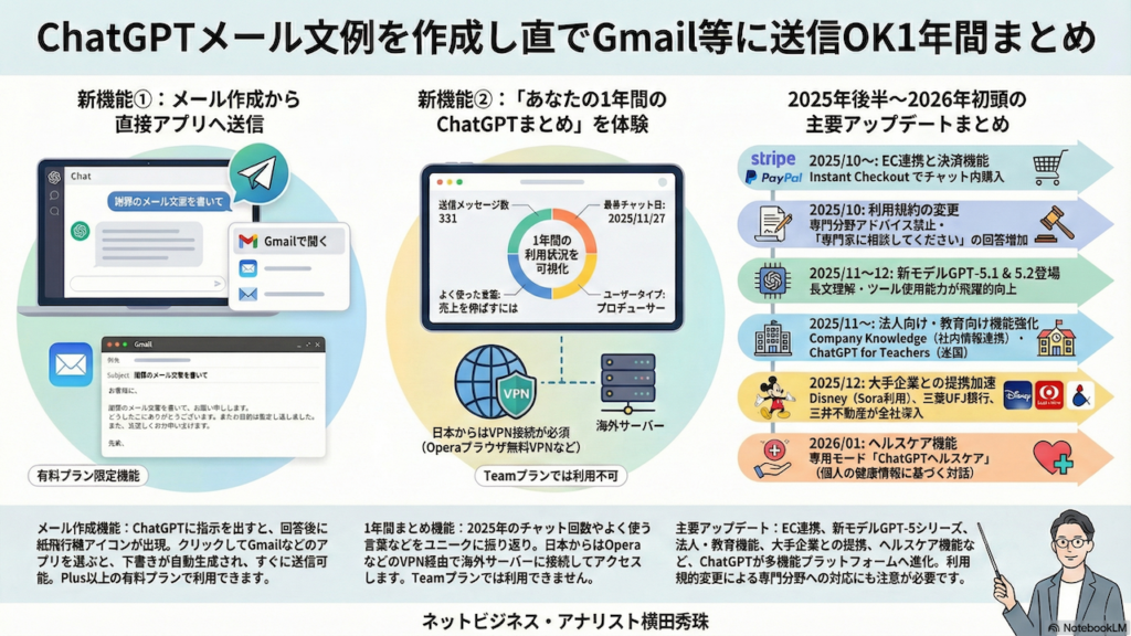📊 ChatGPT2025年総まとめメール送信からヘルスケアまで新機能続々