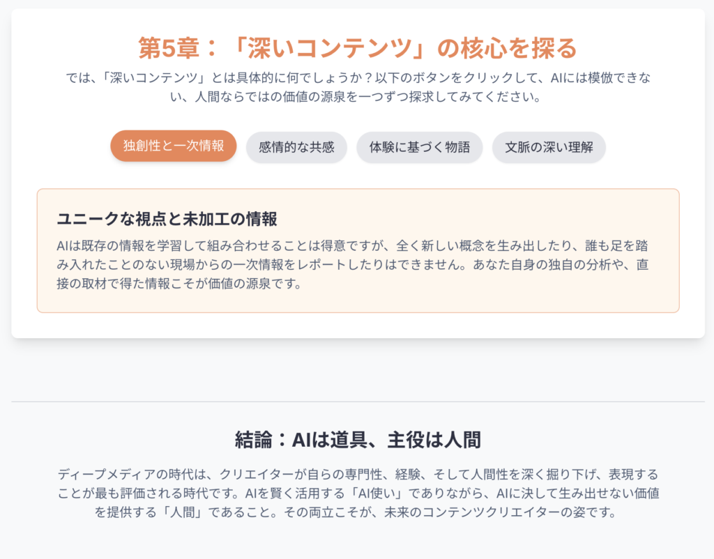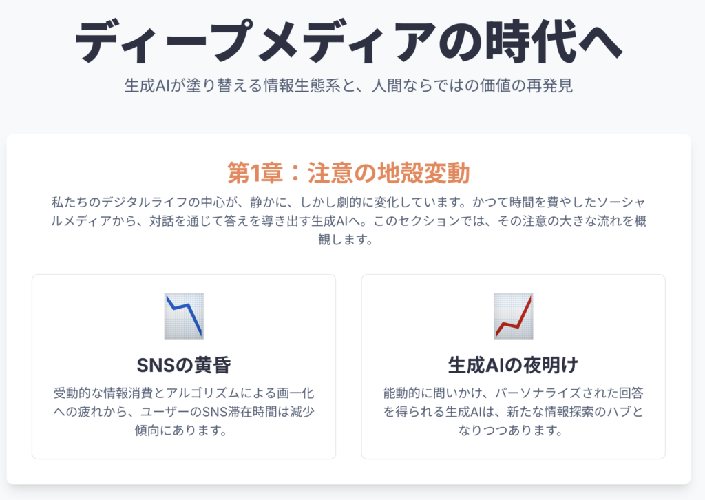 戦略的結論として、この「ディープメディア」の時代において、人間がAIに対して優位性を保つための鍵は、Googleが重視するE-E-A-T(経験、専門性、権威性、信頼性)の要件、特に**経験(Experience)**の徹底的な追求と、LLMによる情報抽出効率を高めるLLMO(大規模言語モデル最適化)の技術的・倫理的な実装に集約されます。