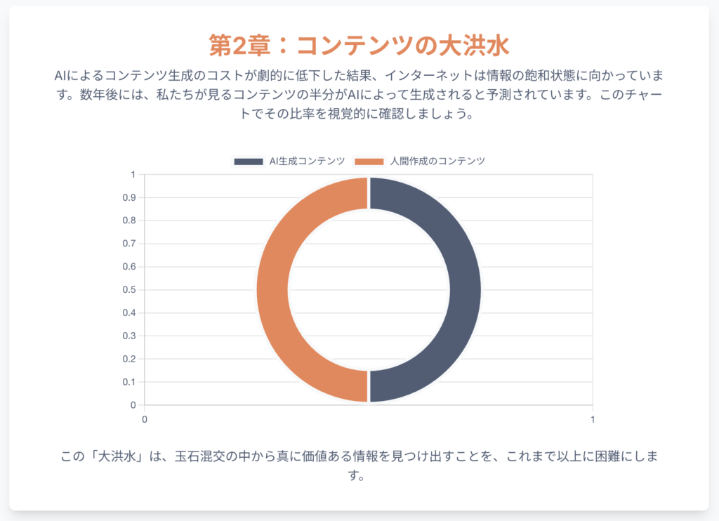 🎵 コンテンツのコモディティ化 AIがオープンな情報を学習し、同じようなコンテンツを大量生成することで、独自性が失われる現象。差別化には、デジタル化されていないアナログ情報やインターネット未公開の情報をコンテンツ化することが重要になっている。