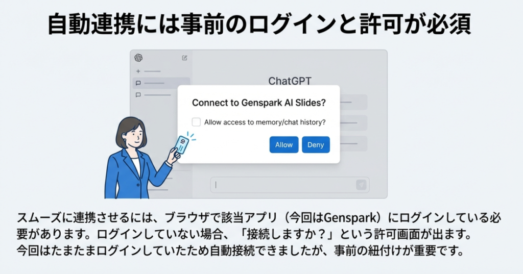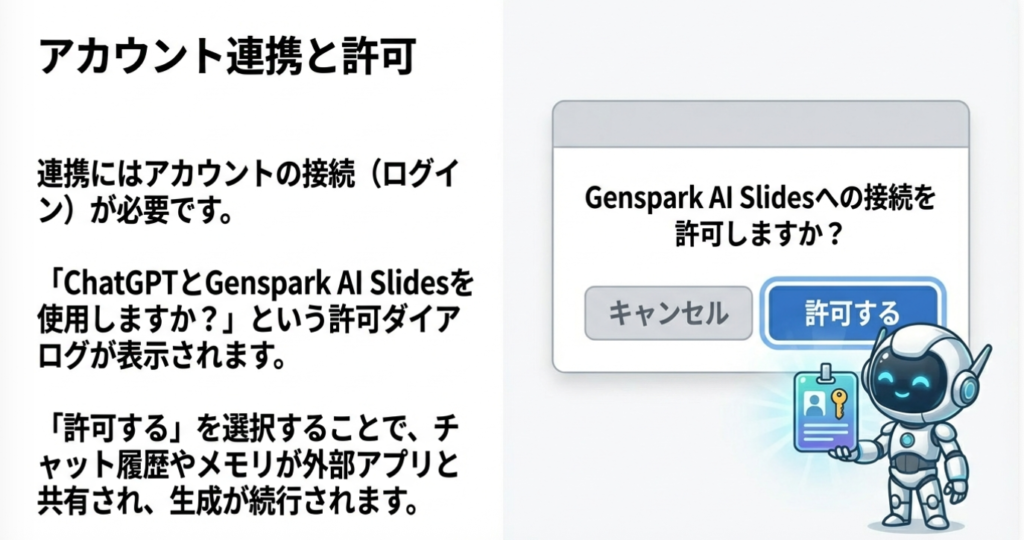 接続時「ChatGPTとGenspark AI Slidesを使用しますか?」→ 許可して続行