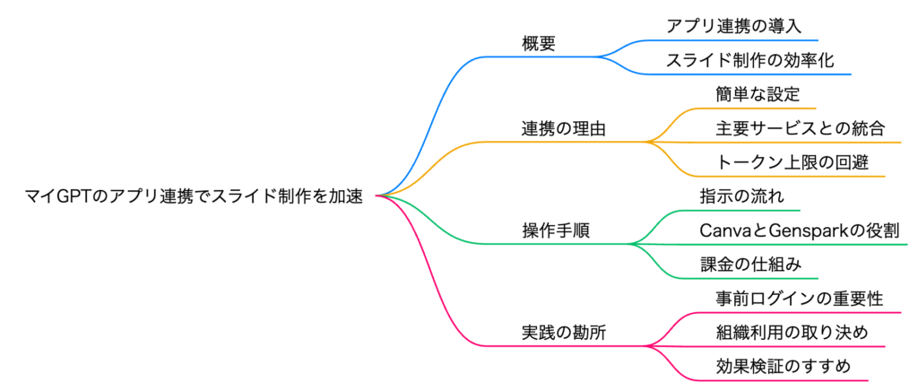 この機能を活用することで、ChatGPT上からスライド生成やデザイン作成が一気通貫でできる可能性が広がります。今回は実際にこの機能を試した体験をもとに、設定方法から使用感まで詳しく解説していきます。ぜひ最後までお読みいただき、ご自身のAI活用をさらに進化させるヒントにしていただければと思います。