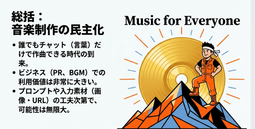 - おわりに:チャットひとつで音楽を作れる未来が、すでに始まっている
