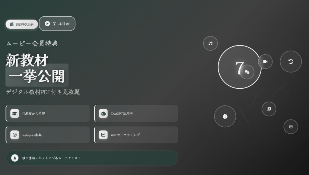 本日は、ネットビジネス研究会のムービー会員特典として、2025年9月分の充実したデジタル教材7本をご紹介させていただきました。IT基礎から最新の生成AI活用まで、幅広いテーマをカバーした豊富なラインナップとなっており、どの教材も実務に直結する実践的な内容となっています。