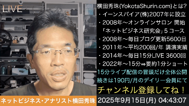 #ネットビジネス研究会 #ムービー会員 #横田秀珠 #セミナー横田秀珠 #講演横田秀珠 #研修横田秀珠 #講師横田秀珠 #コンサルタント横田秀珠