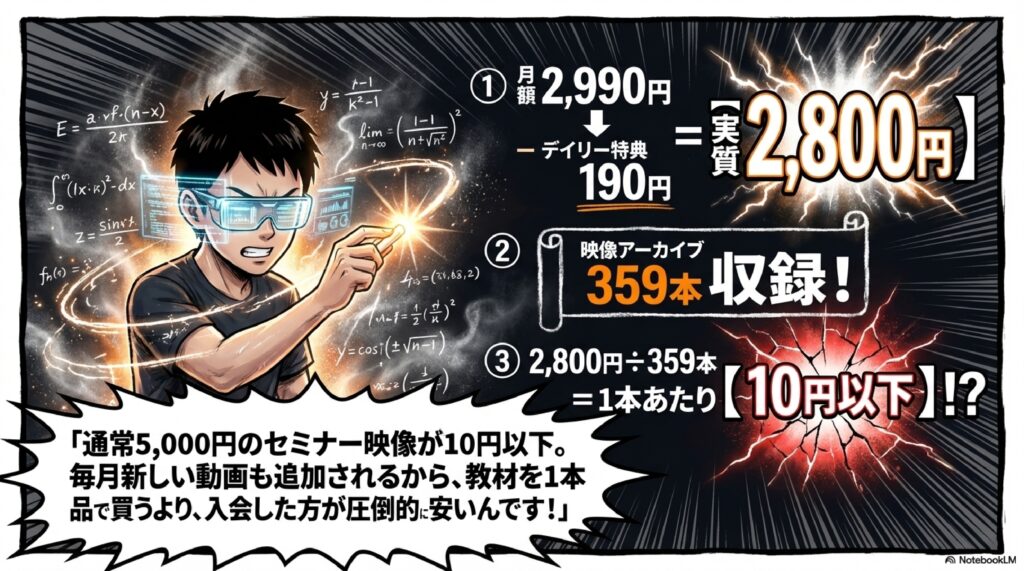 5,000円の教材映像が359本以上見放題|1本あたり約10円以下|デイリー特典込み