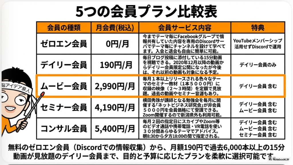 📊 ネットビジネス研究会5つの会員プランとムービー会員特典