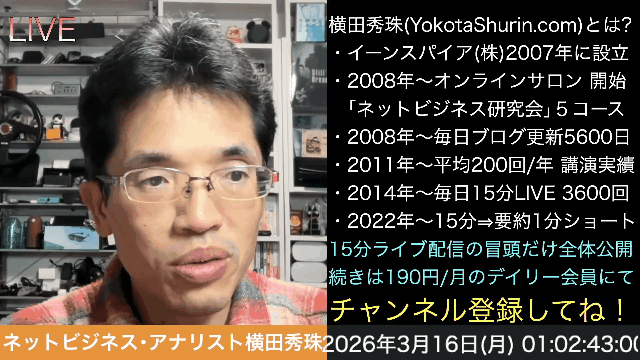 #ネットビジネス研究会 #ムービー会員 #横田秀珠 #セミナー横田秀珠 #講演横田秀珠 #研修横田秀珠 #講師横田秀珠 #コンサルタント横田秀珠