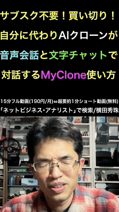 #MyClone #マイクローン #横田秀珠 #生成AIセミナー #生成AIコンサルタント #生成AI講座 #生成AI講習 #生成AI講演 #生成AI講師 #生成AI研修 #生成AI勉強会 #生成AI講習会