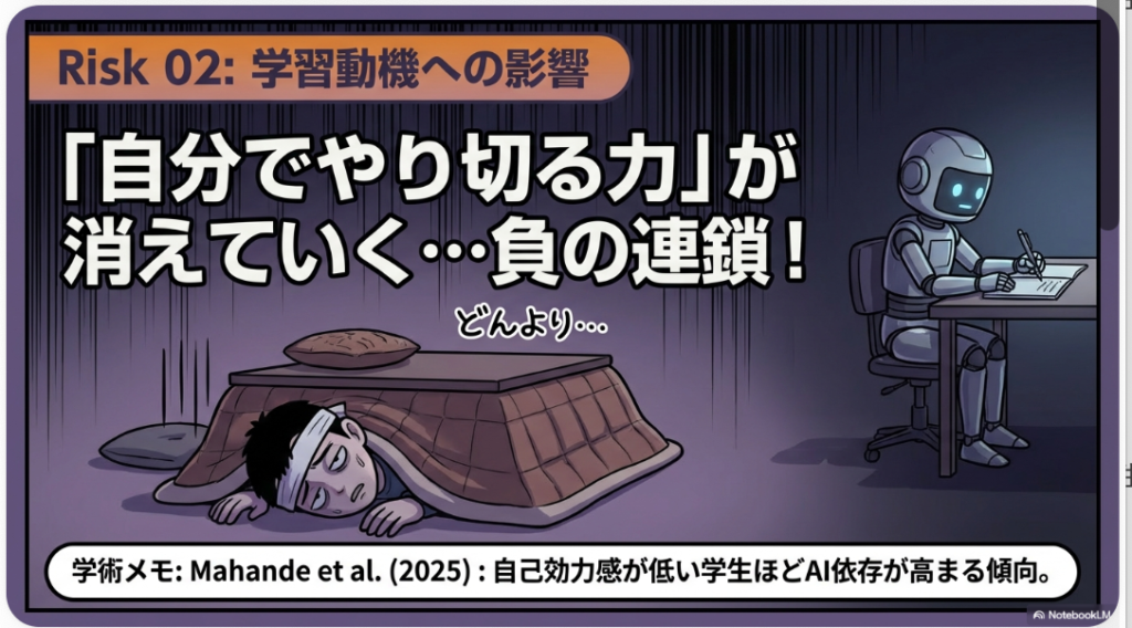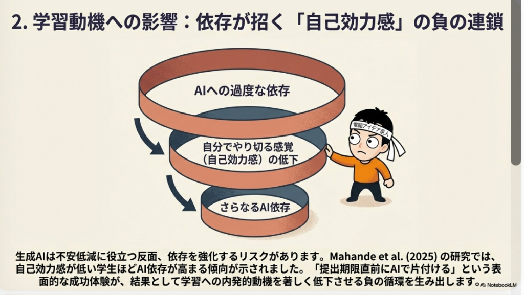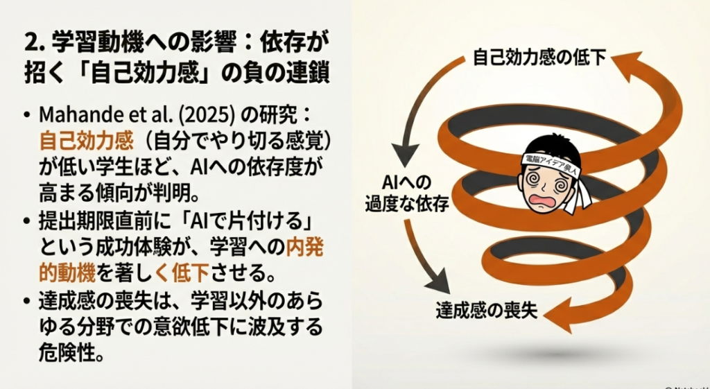 リスク2:学習動機への影響——依存が招く「自己効力感」の負の連鎖