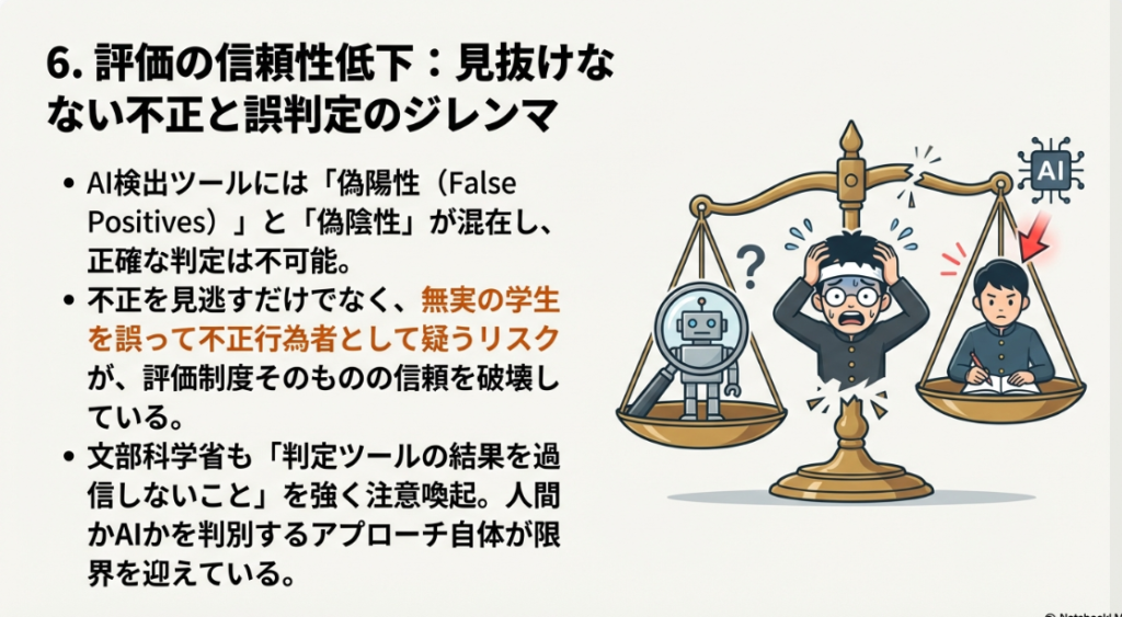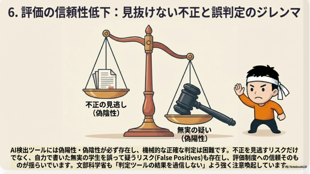 8:27 ⚖️ ⑥評価の信頼性低下:見抜けない不正と誤判定のジレンマ