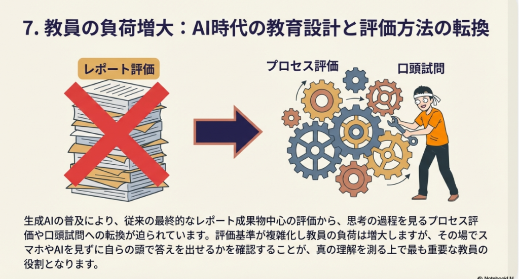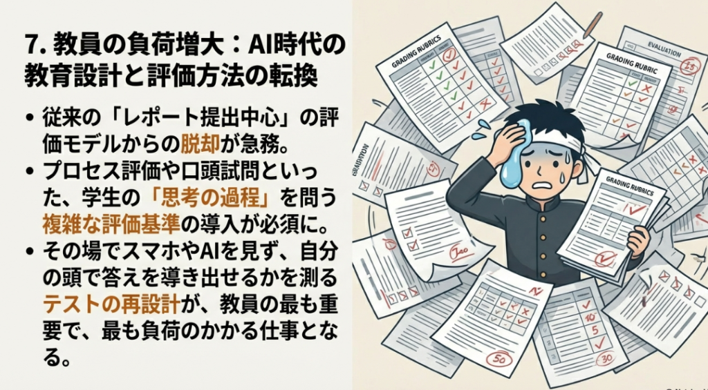 リスク7:教員の負荷増大——AI時代の教育設計と評価方法の転換