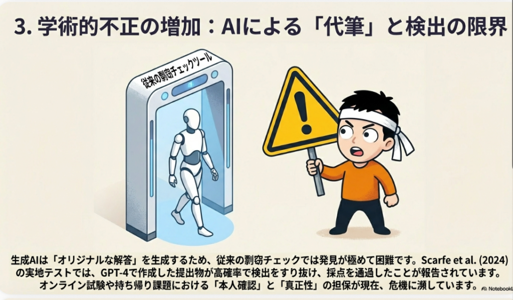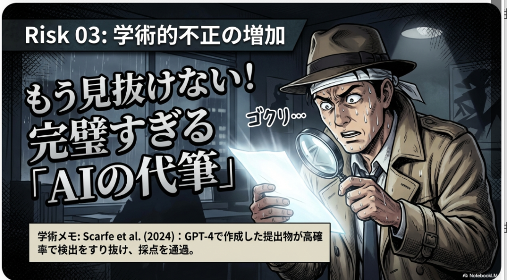 リスク3:学術的不正の増加——AIによる「代筆」と検出の限界
