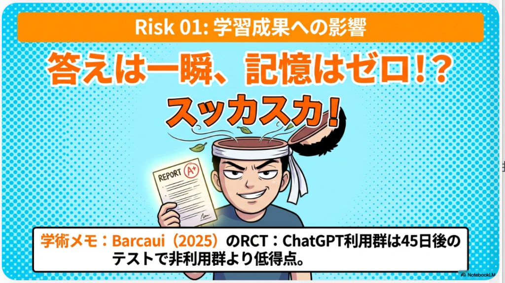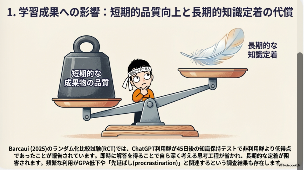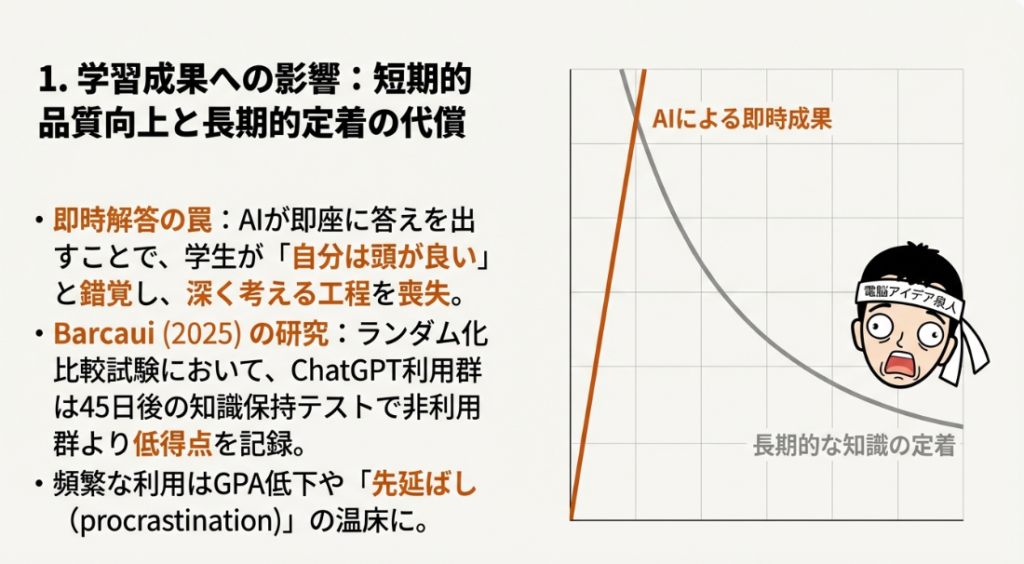 リスク1:学習成果への影響——短期的品質向上と長期的知識定着の代償