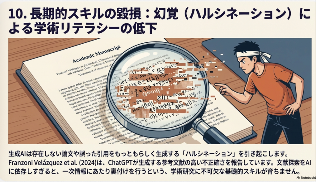 リスク10:長期的スキルの毀損——幻覚(ハルシネーション)による学術リテラシーの低下