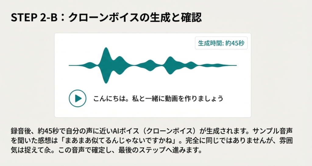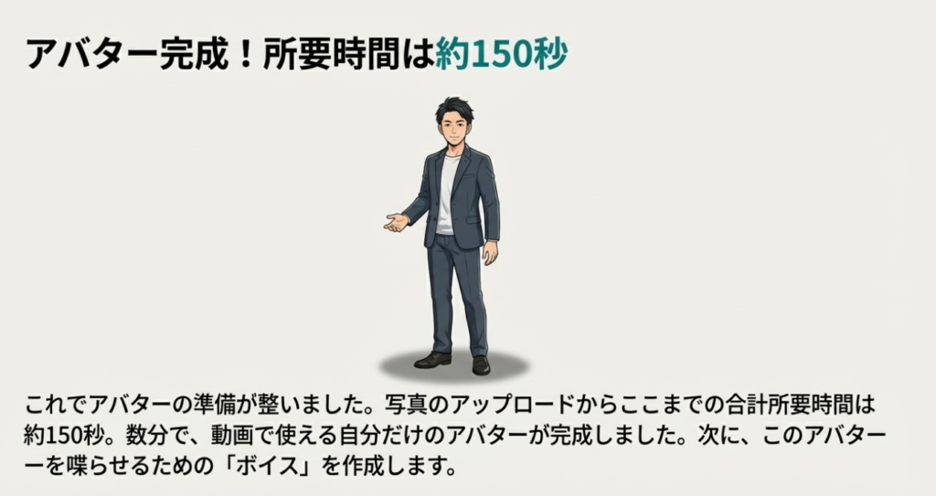 ⏱️ アバター生成: 約90秒 ⏱️ ボイス生成: 約45秒