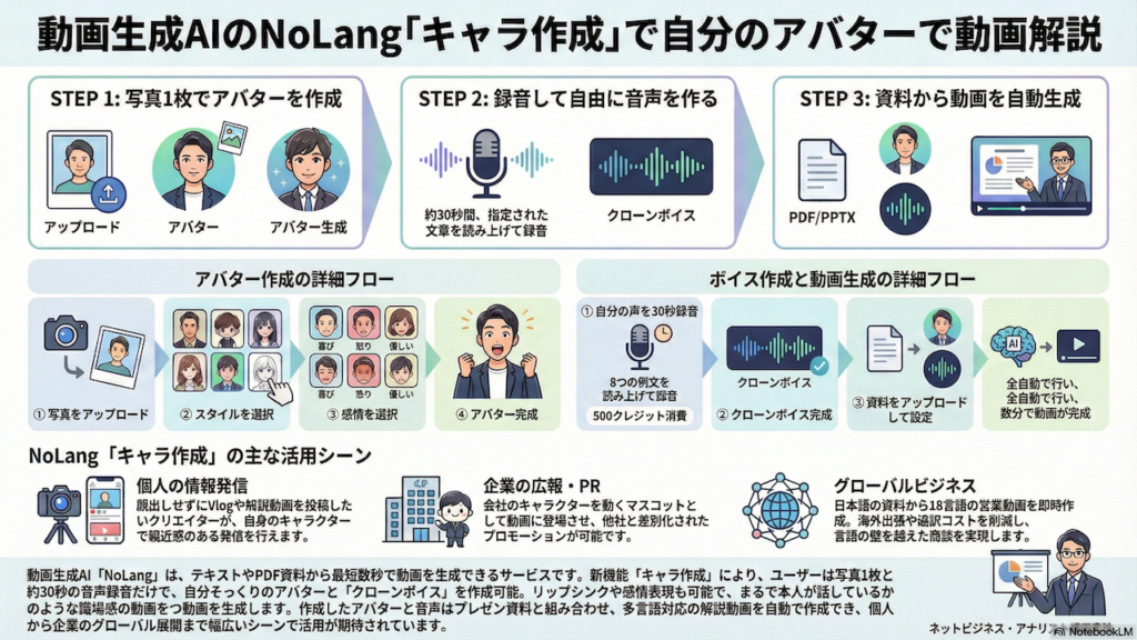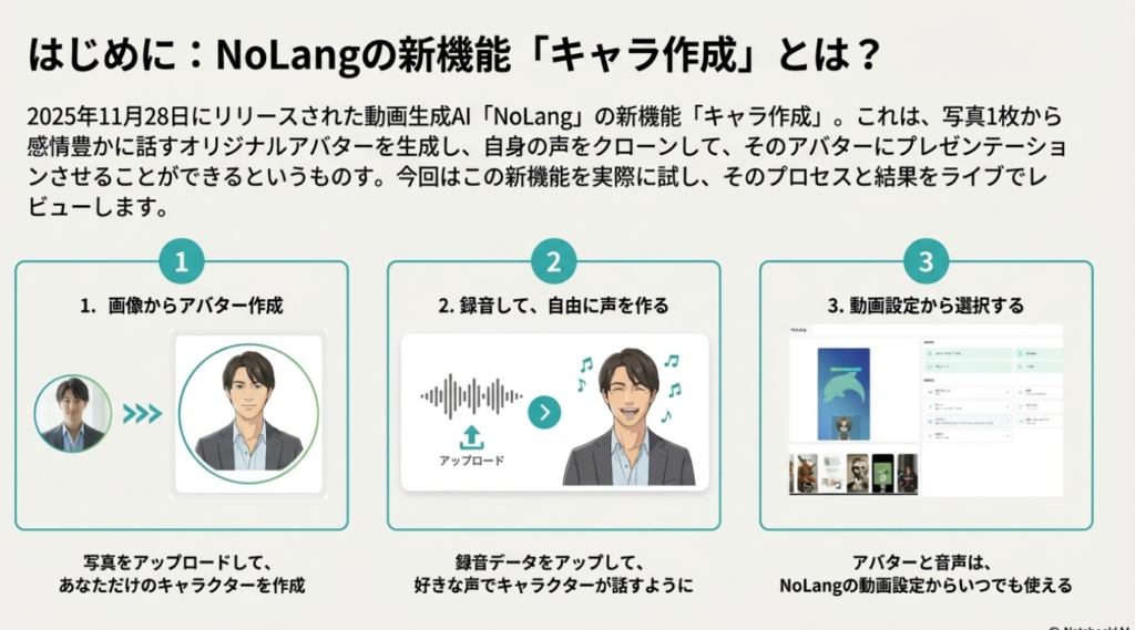 📊 NoLang「キャラ作成」で自分の声とアバターで動画解説が可能に