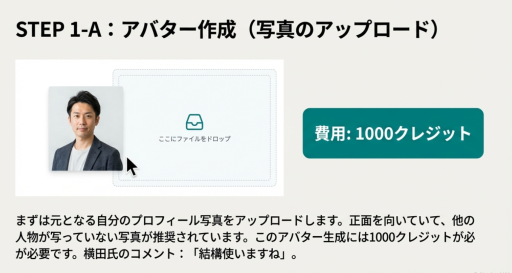 実際にユーザーがAIアバターを作成する手順は、驚くほどシンプルです。