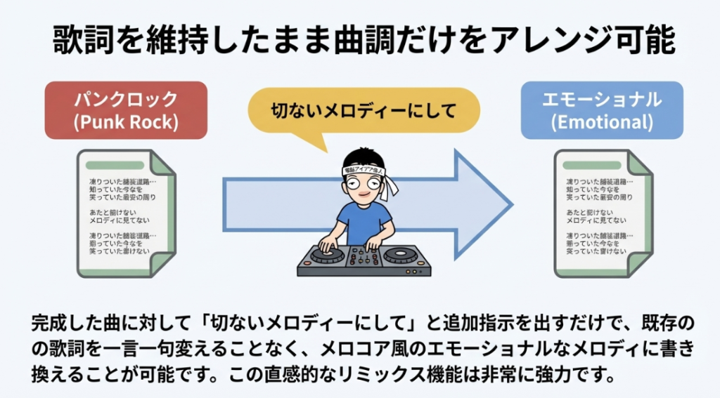 6:26 🎛️ 「切ないメロディにして」リミックス機能を試す