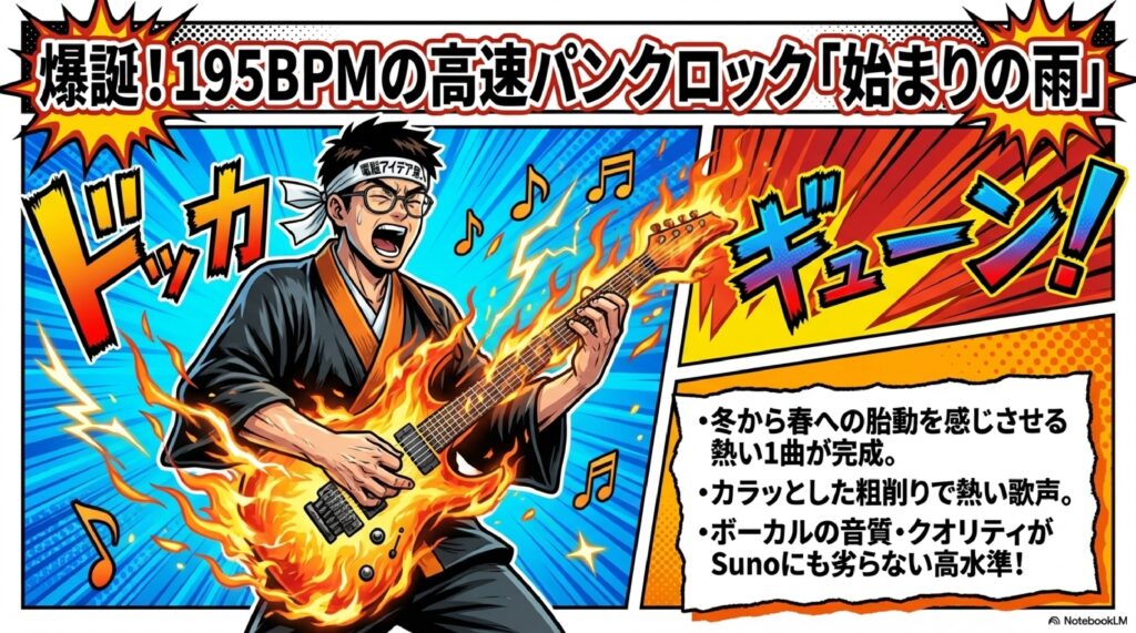 3:30 🎸 「春らしい男性ボーカルのパンクロック」を実際に生成してみる