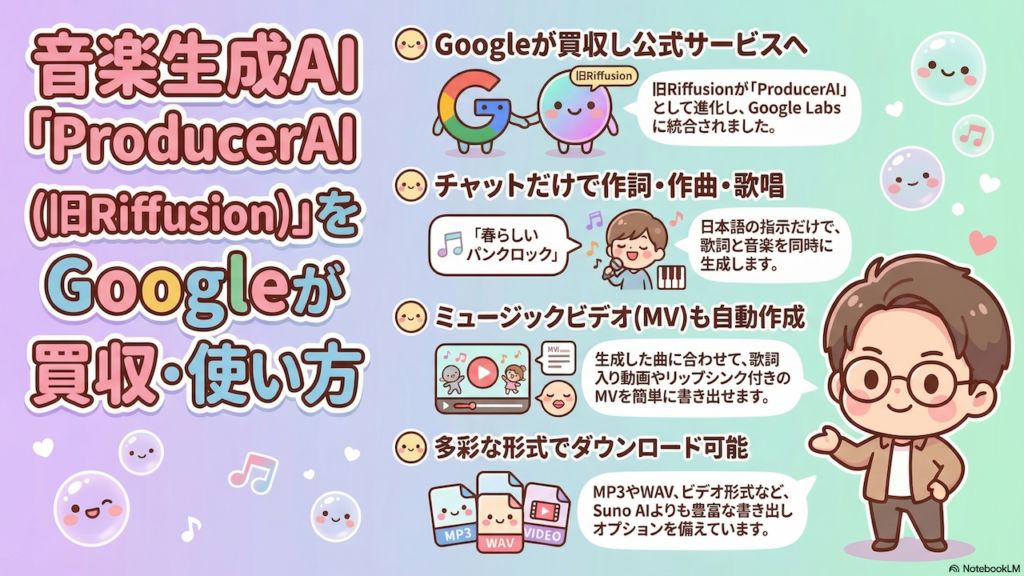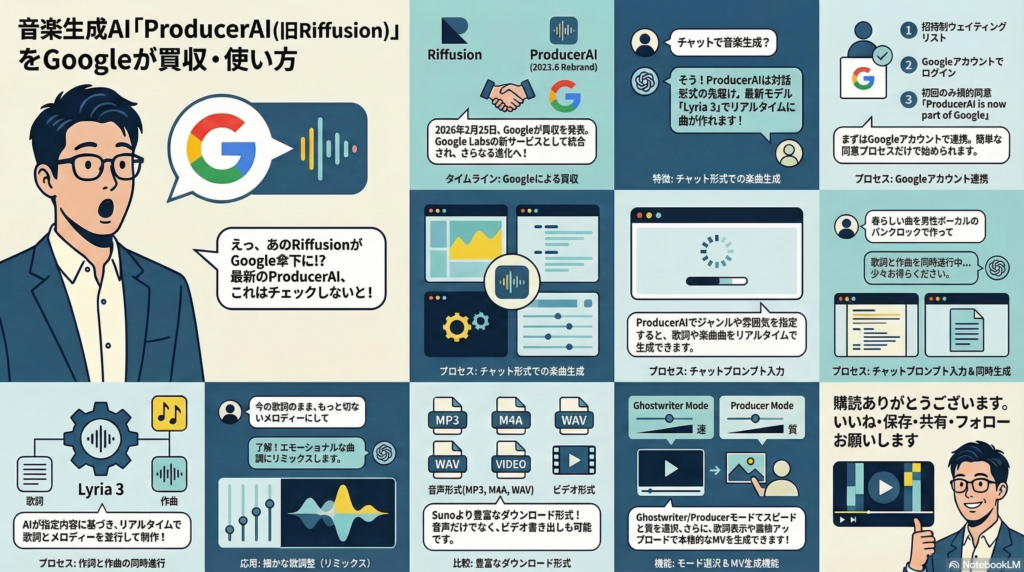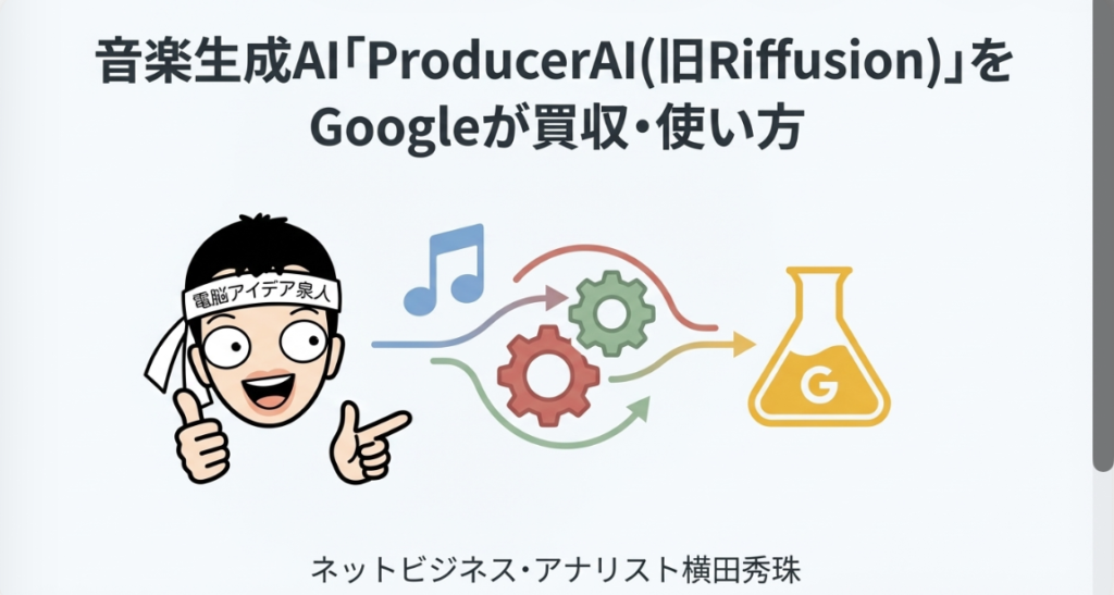 0:00 👋 導入・ProducerAI(旧Riffusion)をGoogleが買収したニュースの紹介