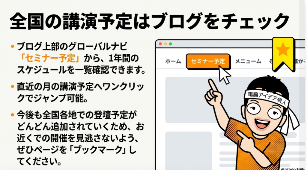 ということで、今日は2026年3月以降のセミナー・講演予定を紹介いたしました。